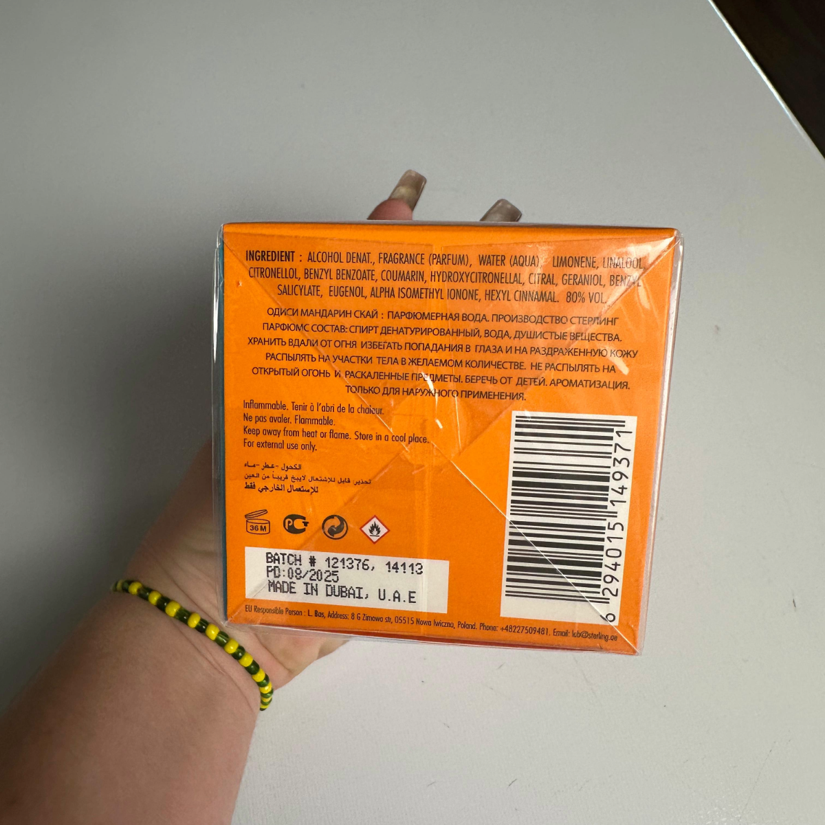 Su apertura cítrica de mandarina aporta energía inmediata, mientras que su corazón aromático se equilibra con notas limpias y ligeramente dulces. El fondo aporta profundidad y una estela elegante, ideal para uso diario o climas cálidos.