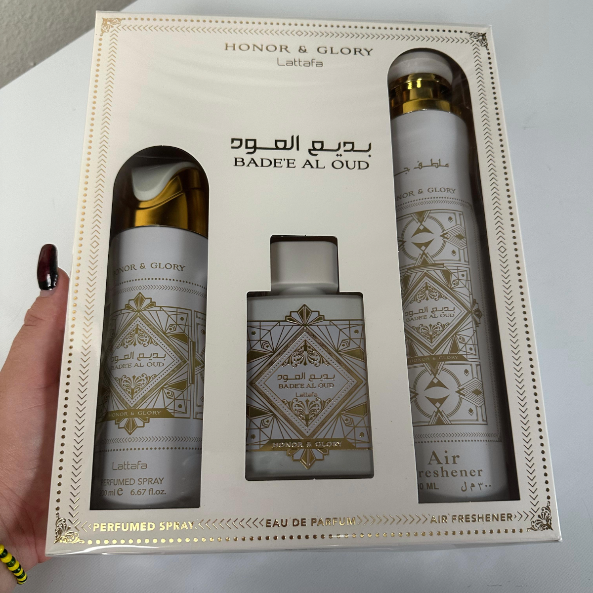 Lattafa Bade’e Al Oud Honor & Glory Set 3 Piezas – EDP + Body Spray + Ambientador